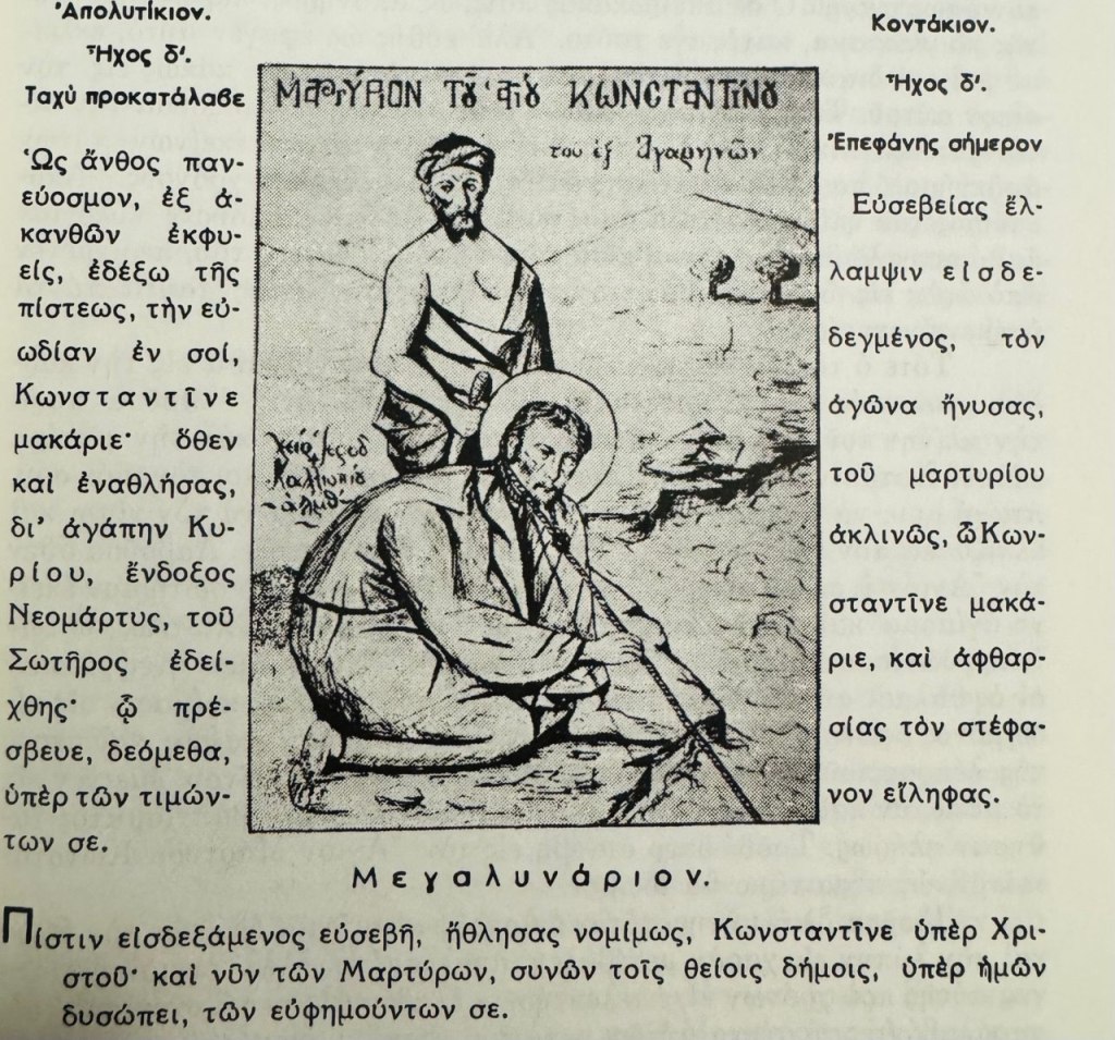 Τοῦ Ἁγίου Ἐνδόξου Νεομάρτυρος ΚΩΝΣΤΑΝΤΙΝΟΥ τοῡ ἐξ Ἁγαρηνῶν . μαρτυρήσαντος ἐν τῇ βασιλευούσῃ τῶν πόλεων ἐν ἒτει ᾳωιθ΄(1819).
